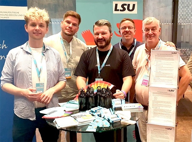 René Powilleit (M.) am LSU-Stand auf dem 49. CDU-Landesparteitag (Foto: Volker Neef)René Powilleit (M.) am LSU-Stand auf dem 49. CDU-Landesparteitag (Foto: Volker Neef)